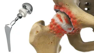 Total hip replacement is the only option for some osteoarthritic hip joints or femur fractures. The image shows that both the socket (the socket) and the head (the neck and neck of your femur) have been replaced. The hospital will provide physical therapy. Research has shown that physical therapy can be used to increase strength and balance in patients.